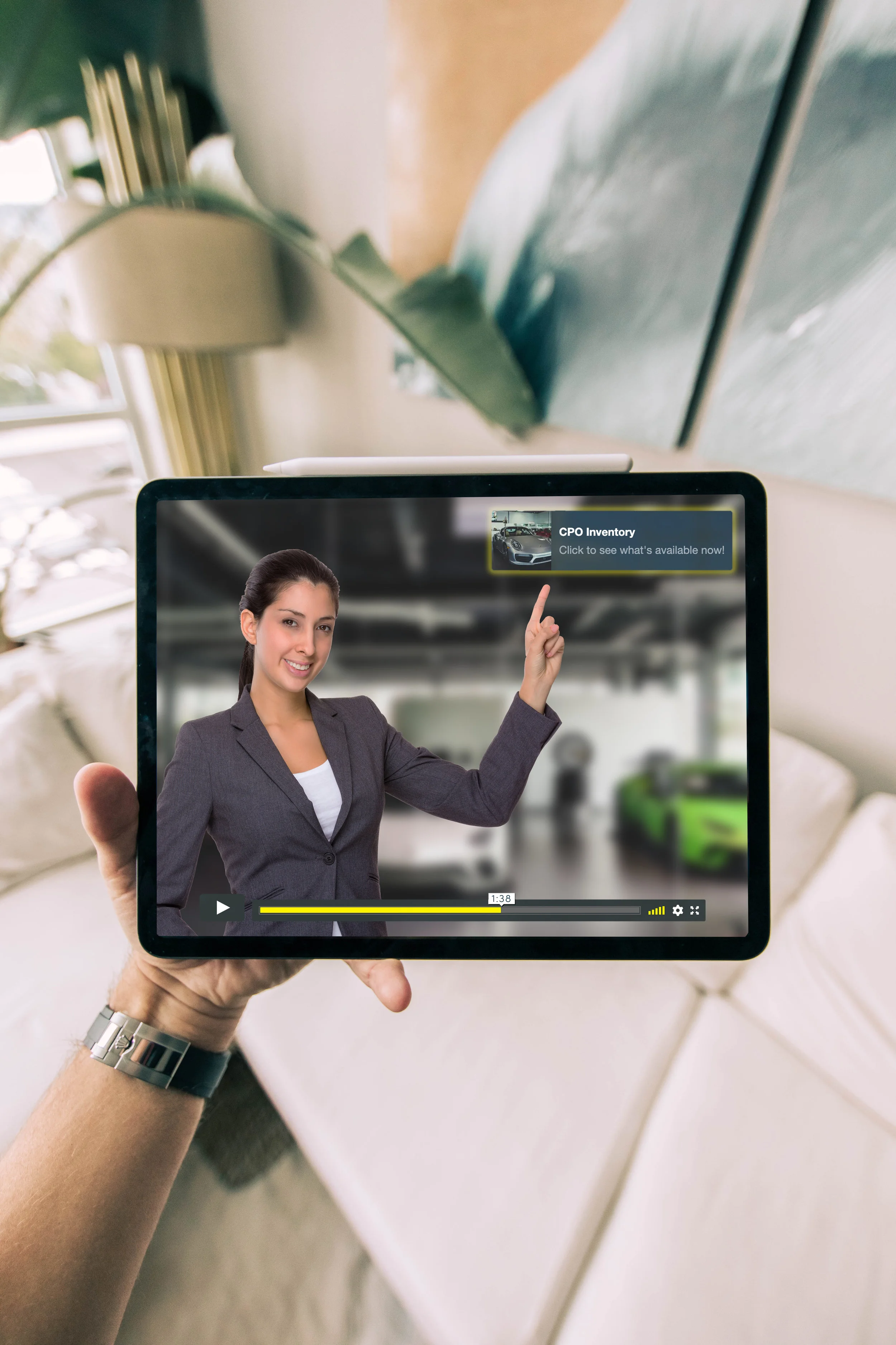 Imagine turbocharging your videos and making them interactive. We have the ability to put buttons directly inside each video that link to anywhere you choose. Do you want your audience to click into the Used Car Inventory page of your website at the 58-second mark of the video? No problem. Want them to input their name and email address directly in the screen while the video plays? We’ve got you. This powerful optional add-on is available for videos we create or ones you source on your own.